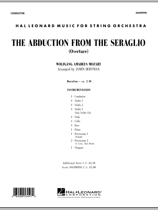 From the comic opera filled with pirates, Turkish princes, kidnapping and daring rescues, Mozart's The Abduction from the Seraglio is the piece of music that generated the (possibly fictional) too many notes story. It is written in the Turkish janissary style, a style of music that fascinated Europe at the time. In this arrangement, the right hand of the piano is frequently written 8va to help recreate the piccolo that figured prominently in the original.