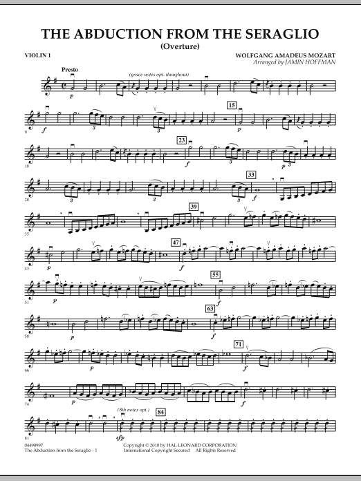From the comic opera filled with pirates, Turkish princes, kidnapping and daring rescues, Mozart's The Abduction from the Seraglio is the piece of music that generated the (possibly fictional) too many notes story. It is written in the Turkish janissary style, a style of music that fascinated Europe at the time. In this arrangement, the right hand of the piano is frequently written 8va to help recreate the piccolo that figured prominently in the original.