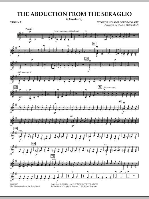 From the comic opera filled with pirates, Turkish princes, kidnapping and daring rescues, Mozart's The Abduction from the Seraglio is the piece of music that generated the (possibly fictional) too many notes story. It is written in the Turkish janissary style, a style of music that fascinated Europe at the time. In this arrangement, the right hand of the piano is frequently written 8va to help recreate the piccolo that figured prominently in the original.