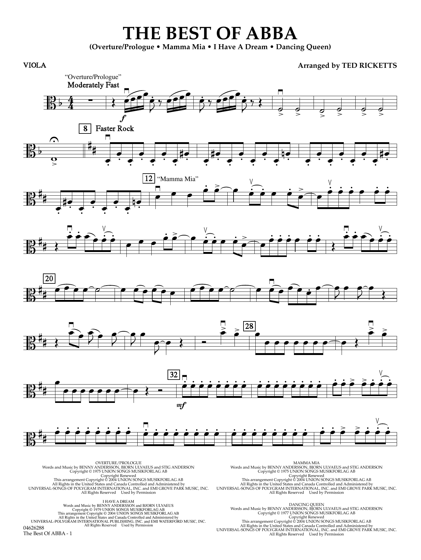 The music of the internationally famous pop group ABBA has found its way to the Broadway stage and serves as the centerpiece of this highly acclaimed show. Ted Rickett's arrangement several of ABBA's best songs from the production. Overture/Prologue, Mamma Mia, I Have A Dream and Dancing Queen.