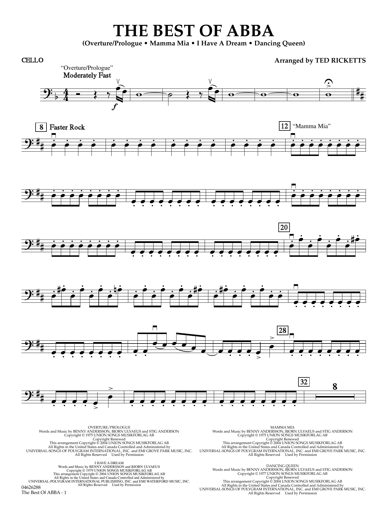 The music of the internationally famous pop group ABBA has found its way to the Broadway stage and serves as the centerpiece of this highly acclaimed show. Ted Rickett's arrangement several of ABBA's best songs from the production. Overture/Prologue, Mamma Mia, I Have A Dream and Dancing Queen.