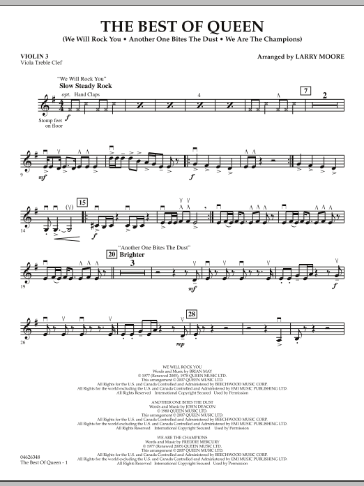 Here's a tribute to one of the legendary groups of all time that features three classic songs that defined Queen's place in pop music history. With Larry Moore's medley for strings, your orchestra can rock with the best of them playing songs that have become popular music anthems. Features: We Will Rock You, Another One Bites the Dust, and We Are the Champions.