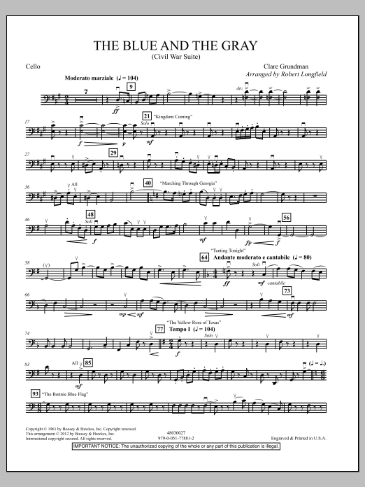 The Blue and the Gray erinnert nicht nur an den vor über 150 Jahren ausgebrochenen Amerikanischen Bürgerkrieg zwischen Nord- und Südstaaten, sondern ist auch eine passende musikalische Würdigung der Geschichte dieses Landes. Clare Grundmans bemerkenswertes Medley aus amerikanischen Volksliedern ist hier von Robert Longfield für Streichorchester bearbeitet worden und beinhaltet die Stücke Kingdom Coming, Marching Through Georgia, Tenting Tonight, The Yellow Rose of Texas, The Bonnie Blue Flag, Aura Lee, Dixie, The Battle Cry of Freedom und Battle Hymn of the Republic.