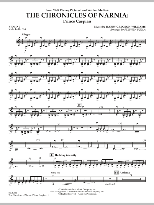 Another powerful film of fantasy from the successful series of books by C. S. Lewis has also produced a soundtrack from composer Harry Gregson-Williams that is dramatic, sensitive and engaging. ?¬Larry Moore has arranged some of the best moments from the film into a well-paced medley for string orchestra that will have great appeal to student players.