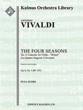 THE FOUR SEASONS concerti, Antonio Vivaldi's most popular works, are exemplary both as early, detailed examples of what would come to be called "program music," but also because of the revolution in musical concepts necessary to make the music programmatic, with representations of singing birds (differentiated by species), buzzing flies, storms, flowing creeks, and shepherd and his barking dog, hunting parties, parties hunted, drunken dancers, frozen landscapes, and warm winter fires. Vivaldi even published the concerti with accompanying sonnets that made clear what in each season the music was meant to invoke. "Winter" is the fourth and final concerto of the group. Instrumentation in set: Org or Hpchd: Str (8-8-5-5-5): Solo Vn.
