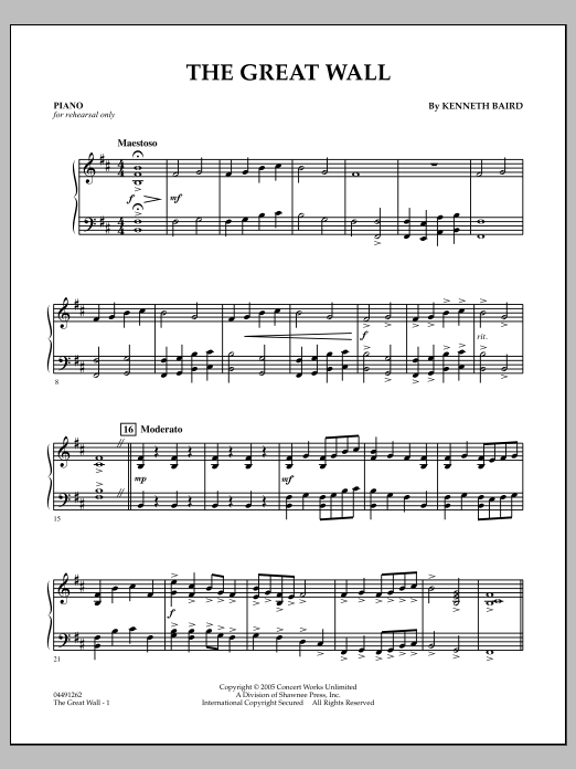 Strong modal melodies and harmonies, clear tempo changes, and melodic sections for all players, The Great Wall is teaching and program material at its best for developing groups. Your students will love its bold, dramatic sonorities that makes them sound strong and confident.