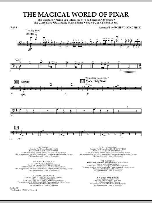The unmatched creativity of Pixar Studios continues with blockbuster films that have become entertainment icons of our time. Each has a memorable musical score, several of which are combined into this terrific showcase for string orchestra. Includes: The Big Race (Cars), Nemo Egg (Finding Nemo), The Spirit of Adventure (Up), The Glory Days (The Incredibiles), Ratatouille (Main Theme), and You've Got a Friend (Toy Story).