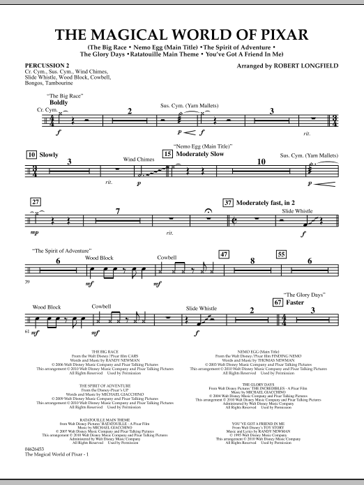 The unmatched creativity of Pixar Studios continues with blockbuster films that have become entertainment icons of our time. Each has a memorable musical score, several of which are combined into this terrific showcase for string orchestra. Includes: The Big Race (Cars), Nemo Egg (Finding Nemo), The Spirit of Adventure (Up), The Glory Days (The Incredibiles), Ratatouille (Main Theme), and You've Got a Friend (Toy Story).