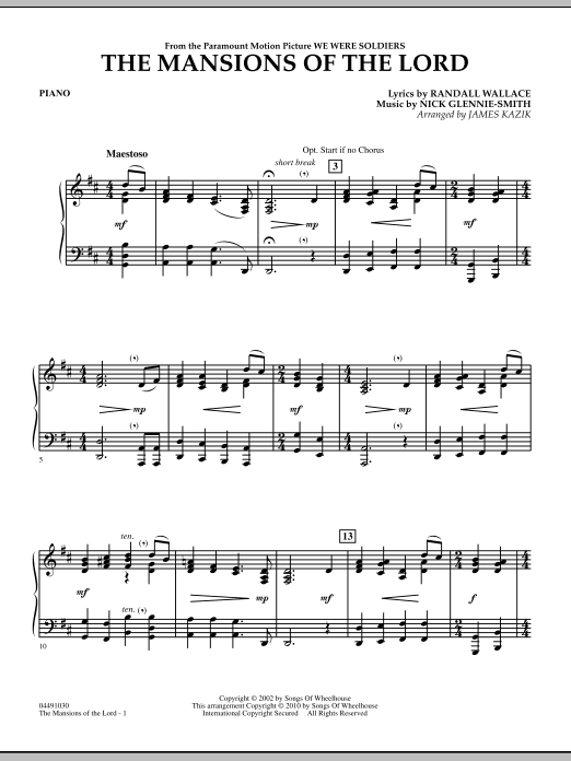 This powerful anthem was heard in the film We Were Soldiers, and was part of the worldwide broadcast of President Reagan's funeral. James Kazik's skilled arrangement can also be performed with chorus.