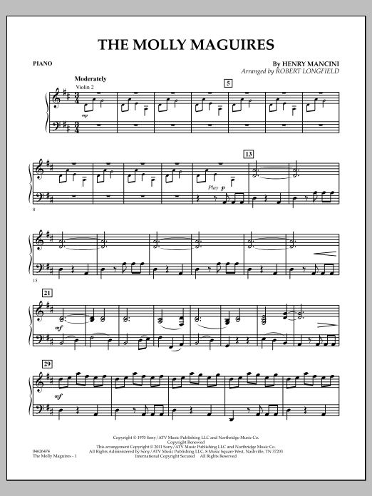 The gentle folk style of this Mancini film theme is a perfect fit for string groups with its Celtic-flavored tune. Robert's tasteful version features violin solo moments, a striking key change, and a terrific opportunity to teach and reinforce dotted eighth/sixteenth note figures.