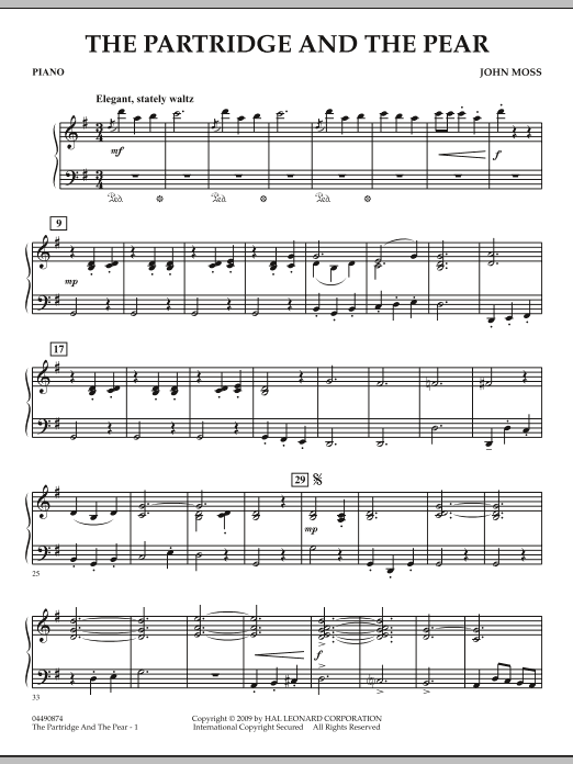 John Moss' delightful concert piece is light and fun with hints of The Twelve Days of Christmas cleverly worked into a contemporary, holiday waltz. A fresh, new approach to a holiday favorite, ideally scored for younger string players.