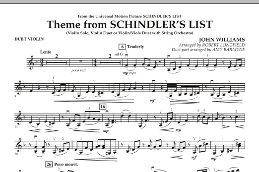 Diese Sonderausgabe des wortgewaltigen Themas von John Williams ist so arrangiert, dass ein Violinsolo, ein Violinduett oder ein Violin- und Viola-Duett möglich ist. Der Solopart ist in der Originaltonart gehalten und wird von Ithzak Perlman gespielt. Der Duopart wird von einem reichhaltigen Streichorchester untermalt. Ein kraftvolles und dramatisches Programmstück!