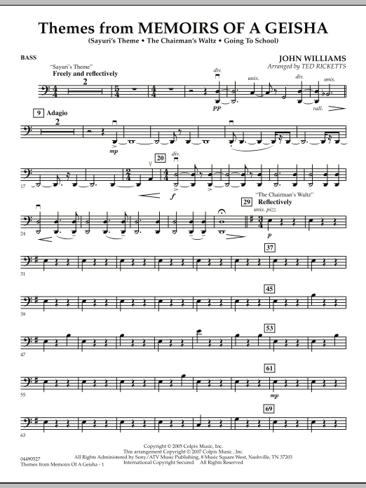 With another Oscar-nominated score, John Williams again shows his versatile writing skills with this evocative soundtrack that blends the rich musical cultures of Japan with those of Western orchestral music. Ted Ricketts' adaptation highlights four distinctive themes from the film's score, which featured Yo-Yo Ma and Itzhak Perlman. Included are 'Sayuri's Theme, ' 'Going to School, ' and 'The Chairman's Waltz, ' accompanied by Eastern percussion textures and optional harp.