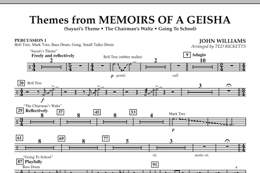 With another Oscar-nominated score, John Williams again shows his versatile writing skills with this evocative soundtrack that blends the rich musical cultures of Japan with those of Western orchestral music. Ted Ricketts' adaptation highlights four distinctive themes from the film's score, which featured Yo-Yo Ma and Itzhak Perlman. Included are 'Sayuri's Theme, ' 'Going to School, ' and 'The Chairman's Waltz, ' accompanied by Eastern percussion textures and optional harp.