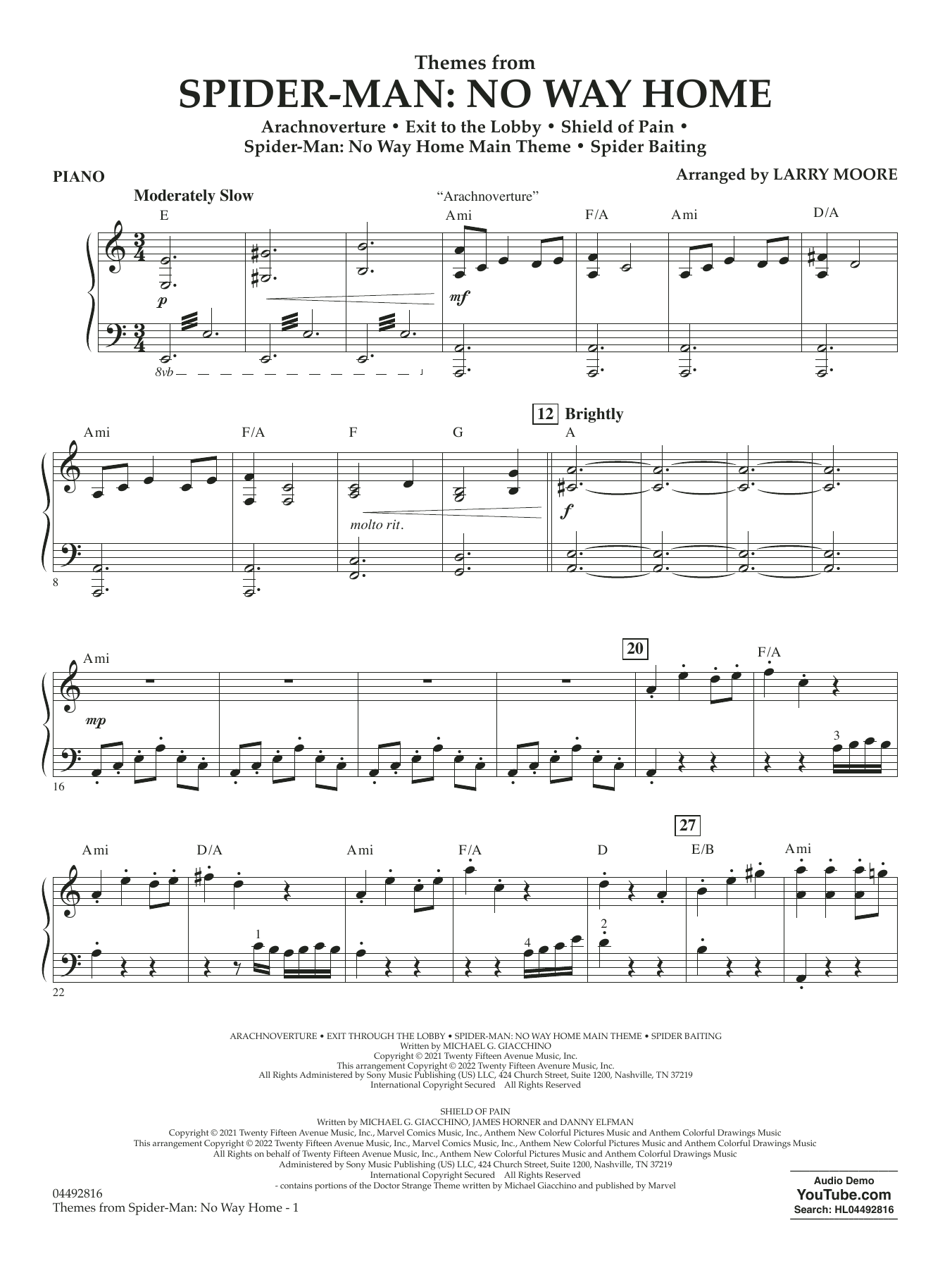 Larry Moores Bearbeitung der Themen aus dem gefeierten Blockbuster "Spider-Man: No Way Home" fängt sowohl den Drive als auch das Pathos des Films ein. Zusätzliche Klavier- und Percussionstimmen erweitern die Klangfülle enorm. Auch wenn das Medley etwas mehr rhythmisches Lesen erfordert, wird sich die Herausforderung lohnen!