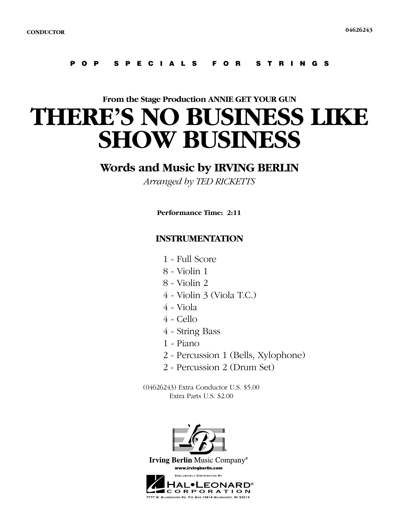 Irving Berlin's classic show opener is second to none when it comes to pops programming. Ted Ricketts' new version for strings includes not only the familiar two-beat show melody, but also the verse scored for violin solo (optional).