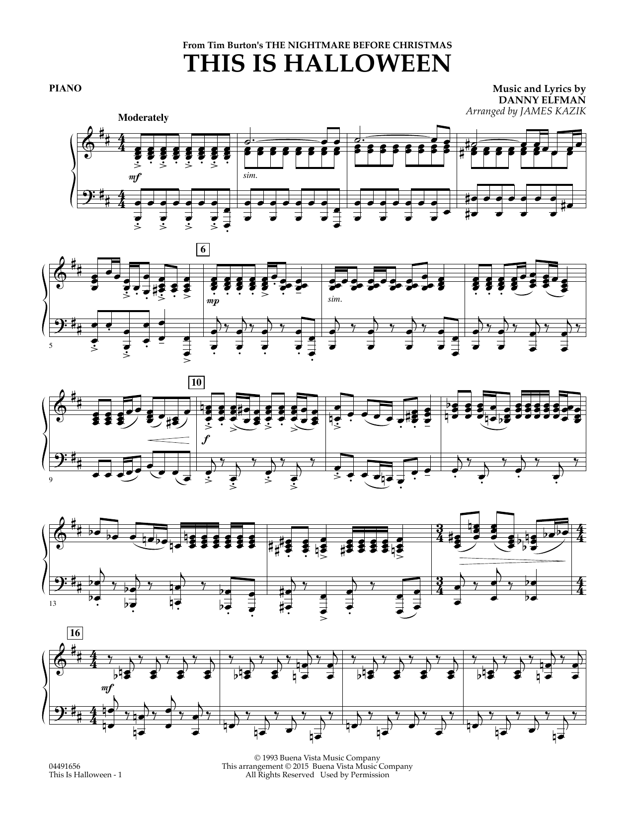 From Disney and Tim Burton's hit film The Nightmare Before Christmas, Danny Elfman's quirky, spooky tune is a terrific program choice for both Halloween and holiday themed concerts. Students have adopted the film as one of theirevergreen favorites and will be thrilled to perform this memorable tune.