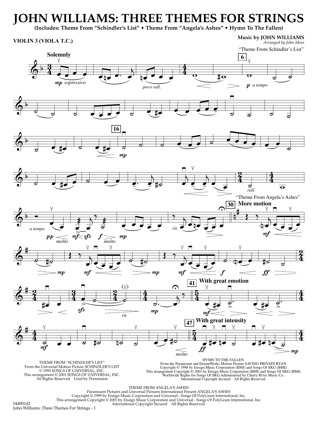 Three memorable themes from renowned film composer John Williams are included in this sensitive musical montage. John Moss has captured the emotion and musical drama of these award-winning film scores with his arrangement thatincludes: Schindler's List, Angela's Ashes, and Hymn to the Fallen (from Saving Private Ryan).