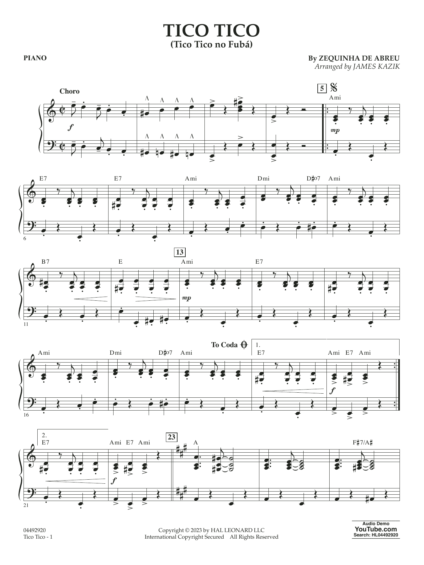 Tico Tico No Fubá - Piano