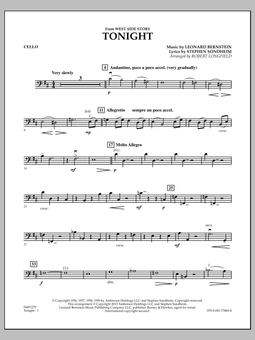 Dieser gefühlvolle Song aus Bernsteins Musical-Klassiker West Side Story wurde hier kunstfertig von Robert Longfield für Streichorchester bearbeitet. Die Bearbeitung zeichnet sich durch verschiedene Stil- und Tempowechsel aus, die das Dramatische und Emotionale der originalen Version für Bühne und Film widerspiegeln.