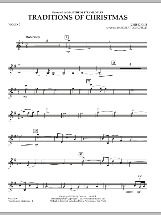 From Mannheim Steamroller's ever-popular Fresh Aire album, this is a wonderful change of mood with its gently flowing lines and peaceful atmosphere. Robert Longfield has skillfully adapted Chip Davis' simple melody into an approachable version that works ideally for string ensembles.
