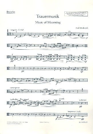 Anrührend schöne Streicherklänge, aus denen sich eine Solobratsche klagend heraushebt - so beginnt die Trauermusik, die Hindemith anlässlich des plötzlichen Todes von König Georg V. in London komponierte. Schon einen Tag nach ihrer Vollendung wurde sie in einem Gedenkkonzert der BBC aufgeführt. Die Sätze des kleinen vierteiligen Werks für Solobratsche und Streichorchester lauten 'Langsam', 'Ruhig bewegt', 'Lebhaft' und 'Choral ‚Vor deinen Thron tret' ich hiermit' - sehr langsam'. Besonders der Bachchoral am Schluss, einige Male unterbrochen von Improvisationen der Bratsche, verleiht der Komposition einen feierlichen Charakter.