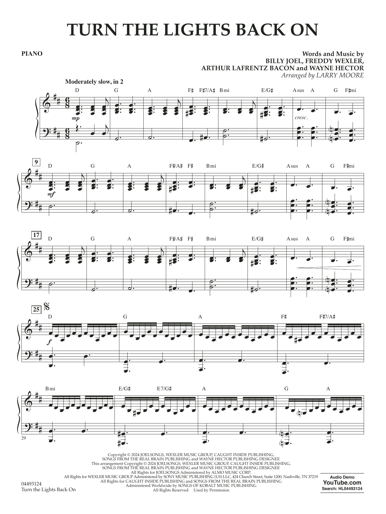 Eine schillernde Verschmelzung von Pop und Klassik! Larry Moores innovatives Arrangement von Billy Joels Chart-Hit Turn the Lights Back On ist ein Muss für moderne Streichorchester. In diesem aufregenden Stück mit treibenden Rhythmen und mitreißenden Melodien sorgen Klavier und Schlagzeug für zusätzlichen Schwung. Es ist perfekt für jede Aufführung, die einen frischen und energiegeladenen Sound sucht!