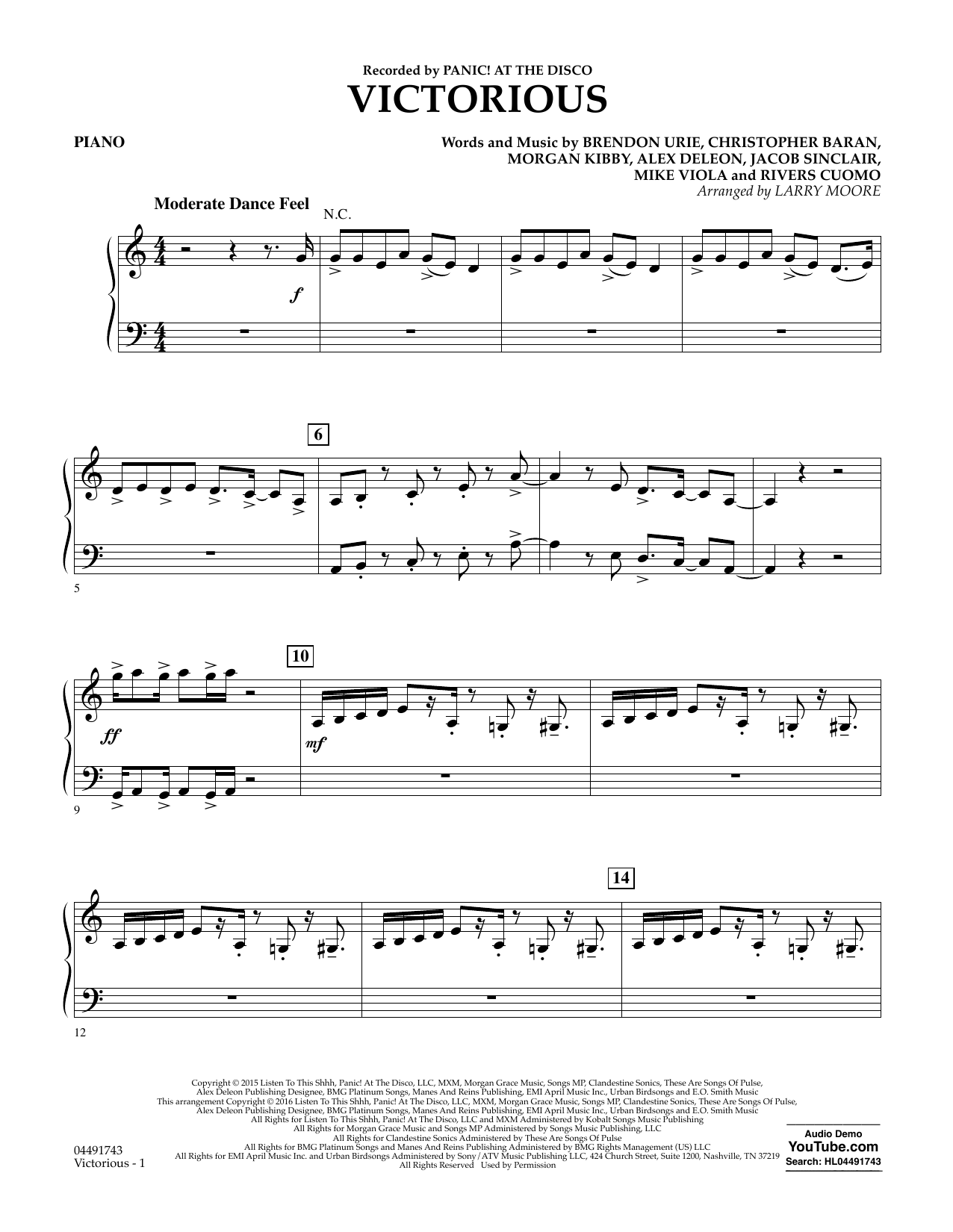 Recorded by pop group Panic! At the Disco, this hit tune features a strong melody and a driving pulse...an uplifting anthem for any ensemble, team, or celebration event.