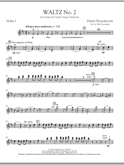 Shostakovich's waltz has become an international icon, made popular by artists like Andre Rieu and recently heard prominently in Stanley Kubrick's final film, Eyes Wide Shut. Taken from Shostakovich's Suite for Variety Orchestra, Paul Lavender's skilled adaptation is ideally suited for string orchestra, for both serious and light programming.