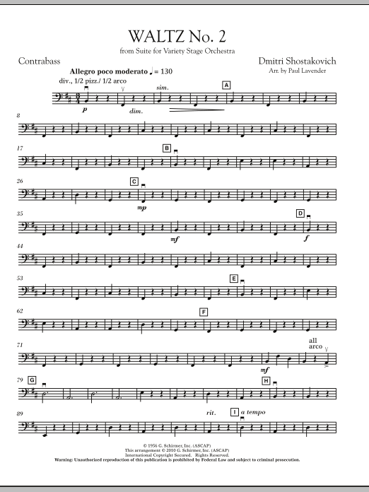 Shostakovich's waltz has become an international icon, made popular by artists like Andre Rieu and recently heard prominently in Stanley Kubrick's final film, Eyes Wide Shut. Taken from Shostakovich's Suite for Variety Orchestra, Paul Lavender's skilled adaptation is ideally suited for string orchestra, for both serious and light programming.