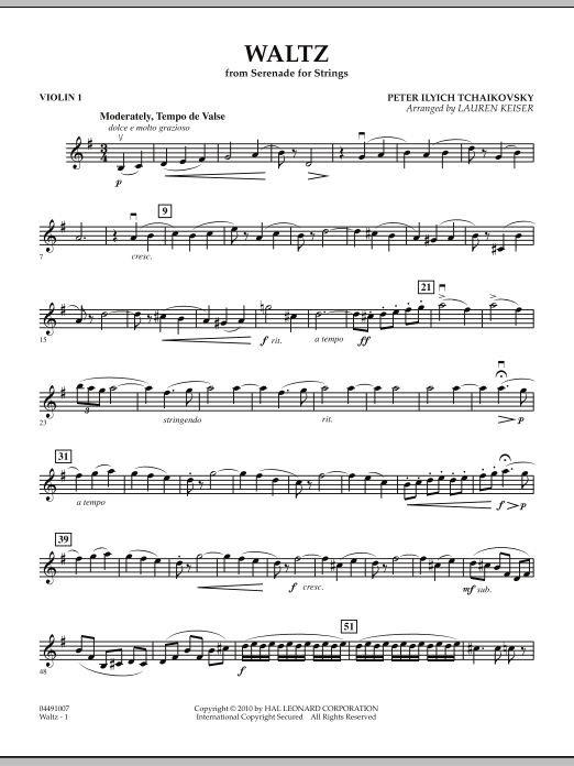 Taken from the second movement of the Serenade (and similar to the minuets of his idol, Mozart), Tchaikovsky's Valse also resembles many of his own ballet movements. Lauren Keiser's skilled adaptation is designed for teaching this important style and genre to young players.
