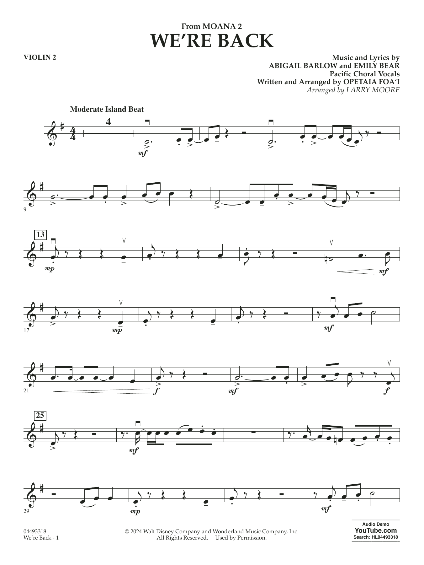 aus "Vaiana 2" - Violin 2