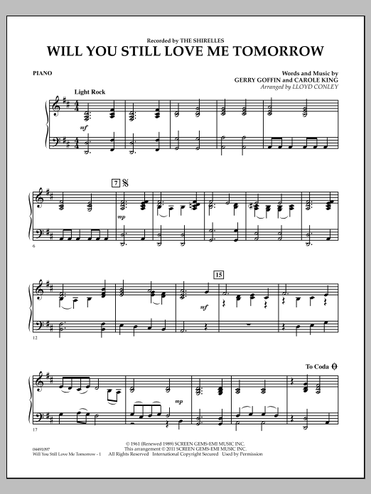 Die Shirelles, geschrieben von Carole King und Gerry Goffin, stürmten mit diesem Hit aus dem Jahr 1961 direkt an die Spitze der Charts, und Ihre Streichergruppe wird mit dieser nostalgischen Pop-Ballade hervorragend klingen.