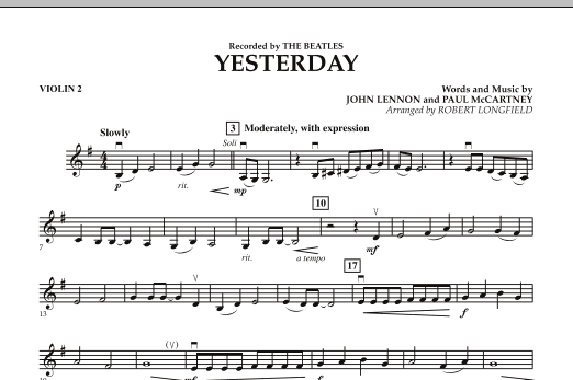 Yesterday, die wohl denkwürdigste Ballade der Beatles, ist nach wie vor einer der bekanntesten Songs unserer Zeit. Diese neue Version für leichte Streicher ist sicher ein Favorit für Ihre Schüler und enthält Melodieabschnitte für alle Spieler.
