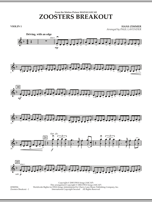 Here's some clever 'traveling' music from the creative minds of the makers of the animated film Madagascar. Played by a string orchestra in the film, this rhythmic vamp-like cue has a charm all its own accompanying the film's lovable zoo animals as they 'tiptoe' from their confines.