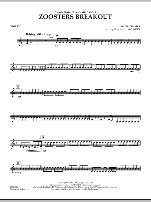 Here's some clever 'traveling' music from the creative minds of the makers of the animated film Madagascar. Played by a string orchestra in the film, this rhythmic vamp-like cue has a charm all its own accompanying the film's lovable zoo animals as they 'tiptoe' from their confines.