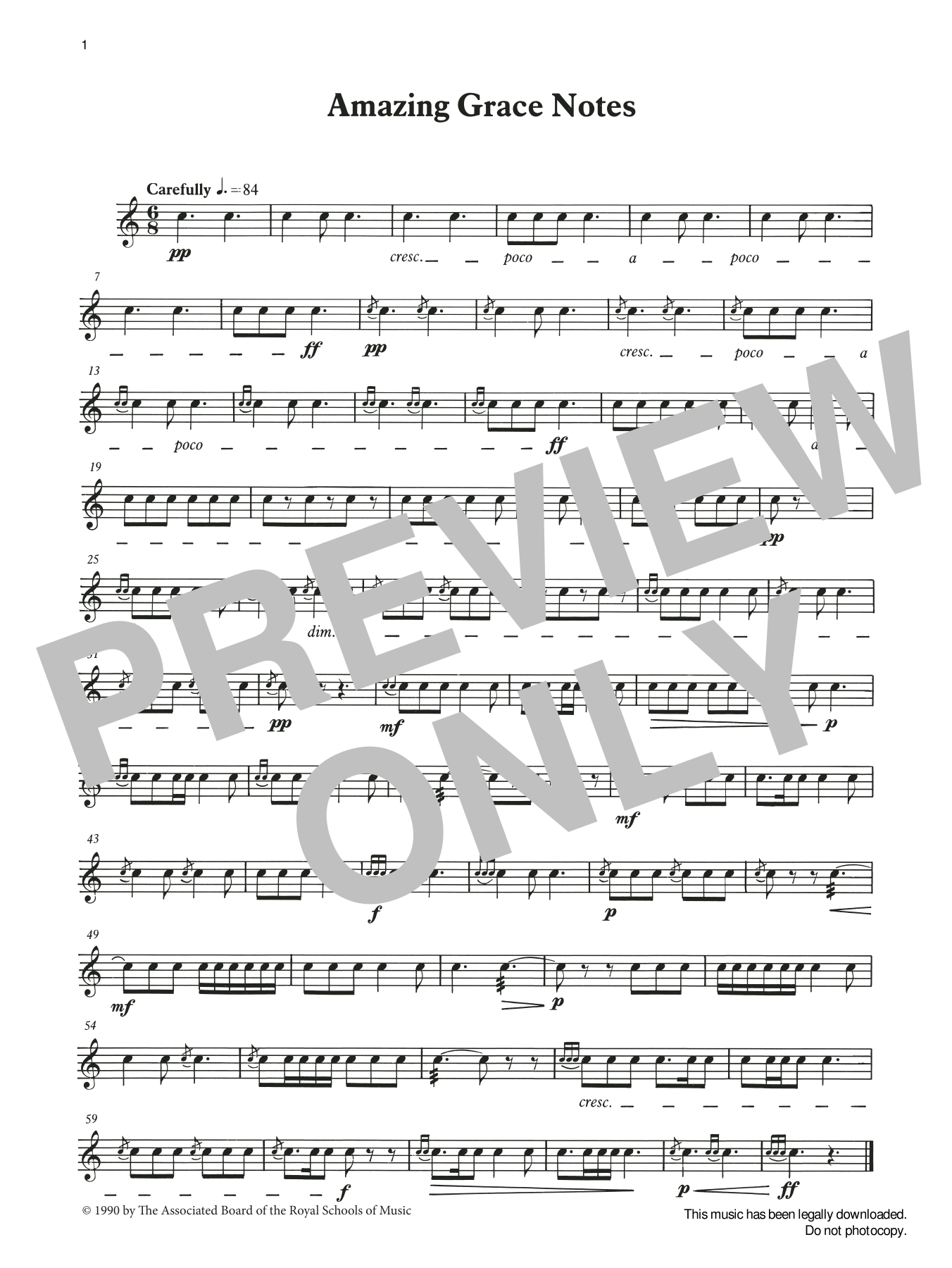 Amazing Grace Notes from Graded Music for Snare Drum, Book II
