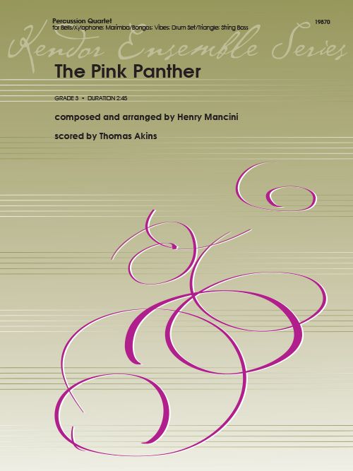 Here's the great Mancini movie theme in a jazzy version for mixed percussion! As you'd expect, marimba and vibes carry the primary melodic lines. Halfway through vibes is given the chance to add improvised solo embellishments around the main theme (chord symbols and basic chord voicings are provided). Duration 2:45