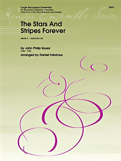 This spectacular version of Sousa's greatest march will be a hit with players and audiences everywhere! Scored for the Binghamton University (NY) Percussion Ensemble, this setting for an ensemble of ten players features a variety of mallet (parts 1-6) and standard percussion instruments (parts 7-10). While the mallet parts are a true orchestration of Sousa's original, the drum partsâhave a more contemporary sound. It may be performed with 6 players only by omitting parts 7-10, and the marimba parts can be played on just two instruments (players 3/4 sharing a 4.3 octave marimba and players 5/6 sharing a 5/0 octave marimba). Duration 3:30.