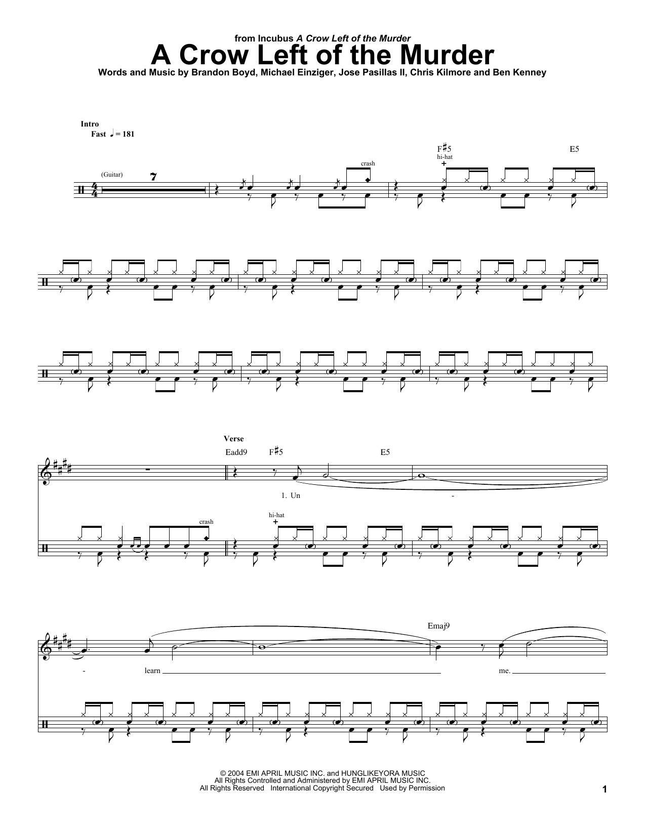 - Komponist Jose Pasillas II, Ben Kenney Brandon Boyd Chris Kilmore