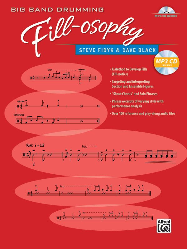 Big Band Drumming Fill-osophy offers a comprehensive approach to playing and interpreting fills in a big band setting. With advice on how to interpret section and ensemble figures, Steve Fidyk and Dave Black give detailed information that will strengthen the drummer's ability to recognize one-, two-, and four-bar section/ensemble figures quickly and easily. The companion MP3 CD contains over 75 reference and play-along examples extracted from real drum charts. They have been 'looped' or repeated for thorough study. Big Band Drumming Fill-osophy will prove to be an invaluable tool in helping to interpret and play big band drum fills.