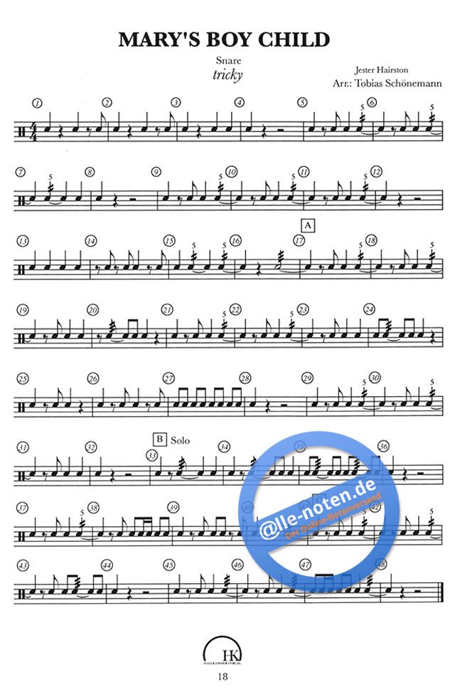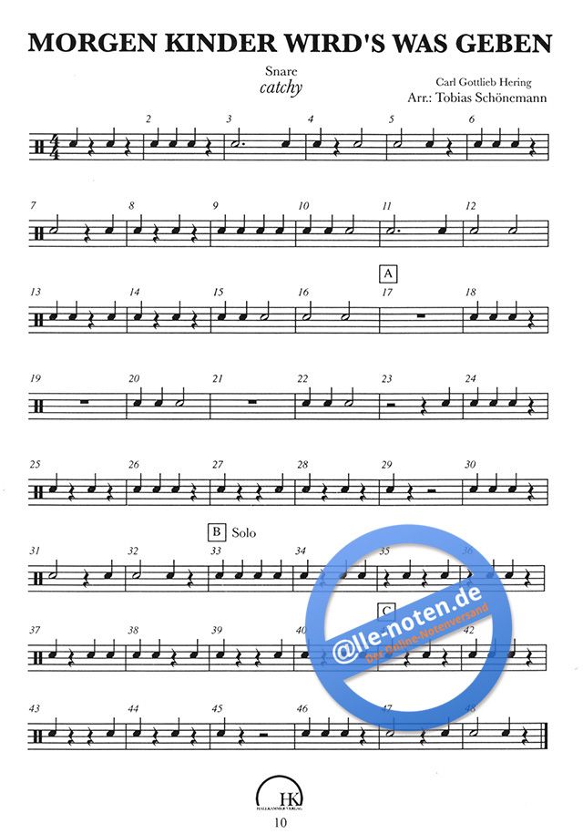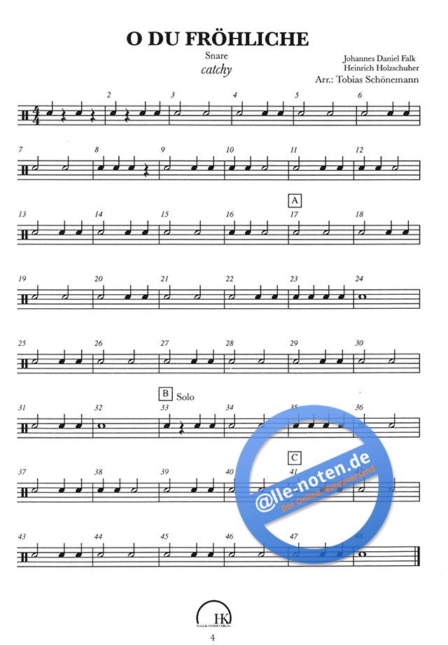 Der Hallkammer Verlag präsentiert hier ein Buch für Schlagzeug und Snaredrum, welches speziell für die Weihnachtszeit konzipiert wurde. Es handelt sich um drei bekannte Weihnachtslieder: 'O Du Fröhliche', 'Morgen Kinder wird's was geben' und 'Mary's Boy Child'. Für Anfänger bis Fortgeschrittene gleichermaßen geeignet, denn die Lieder sind in zwei bzw. drei Schwierigkeitsstufen notiert. Es handelt sich um Arrangements für Snaredrum und Schlagzeug. Die Playalongs, welche zum freien Download enthalten sind, gibt es in drei Geschwindigkeitsstufen (langsam, mittel, Schnell), sodass die Lieder Schritt für Schritt und ohne Stress erlernt werden können. Um das gemeinsame Musizieren zu fördern, gibt es außer der Arrangements auch eine Begleitung für Klavier bzw. für Gitarre. Beides ist einfach gesetzt, damit man von Anfang an mitspielen kann. So kann man Pianisten, Gitarristen und Schlagzeuger gemeinsam Musik erleben lassen. Der Autor hat dem Heft einige praktische Tipps zum erarbeiten beigelegt, also steht einem erfolgreichen Weihnachtsabend am Schlagzeug nichts im Weg!