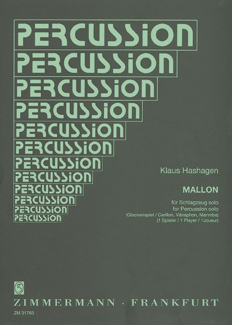 Mallon Der Nürnberger Komponist legt mit Mallon eine Studie für einen Schlagzeuger vor, in der Spielfreude und Klangsinn gefordert sind. Daneben setzt Hashagen auch eine bereits etwas fortgeschrittenere Technik voraus. Durch eine kreis- oder stufenförmige Aufbauanordnung sind alle Instrumente für den Spieler erreichbar. Das Notenmaterial ist in so großem Rastral gesetzt, dass der Notentext auch auf etwas größere Entfernung gelesen werden kann. Die Ausgabe als lose Bögen begünstigt das flexible Aufstellen auf mehreren Notenständern und vermeidet Wendestellen.