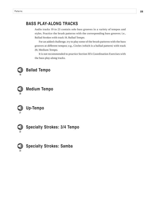 Traditionelle Besentechniken der Meistertrommler sowie neue Ideen und Konzepte für das Besenspiel, Patterns für Balladen, medium- und uptempo-Spiel, Koordination. Online Audio mit 34 Playalong-Bassgrooves