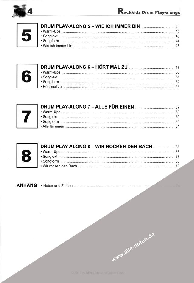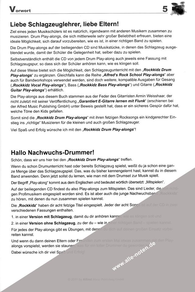Bock auf Rock? Dann sind die Rockkidz Band Play-alongs für Gesang, Gitarre, Bass & Drums für dich genau richtig! Ziel eines jeden Drummers ist, irgendwann mit anderen Musikern zusammen zu rocken. Die Rockkidz Drum Play-alongs liefern dir die Band ins Haus. Einfach die beiliegende Play-along-CD einwerfen, Musikstück anwählen und die im Buch abgedruckten Parts mitspielen. Das ist die ideale Lösung, dich darauf vorzubereiten, wie es ist, in einer richtigen Band zu spielen.