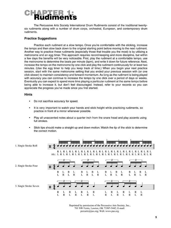 This book/CD pack from seasoned drummer/percussionist Maria Martinez provides drum exercises and variations based on the 40 contemporary drum rudiments. The CD features demo and play-along tracks so that you can practice and learn in an interactive fashion.