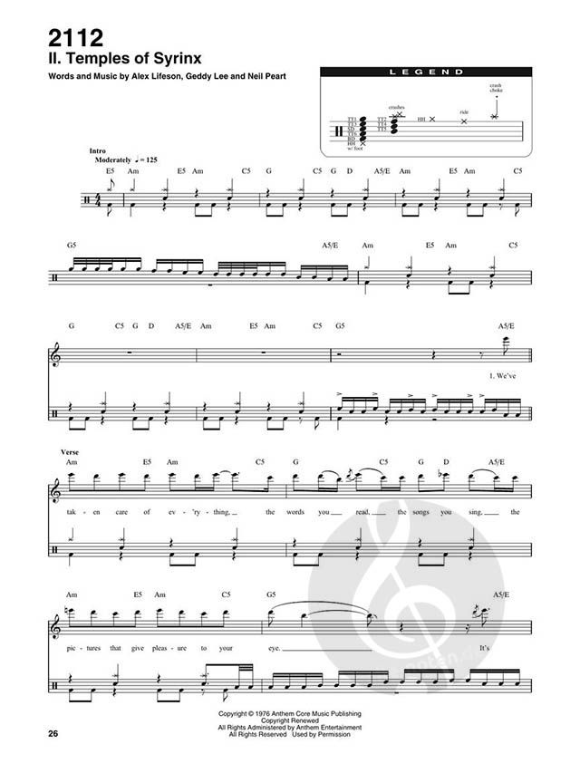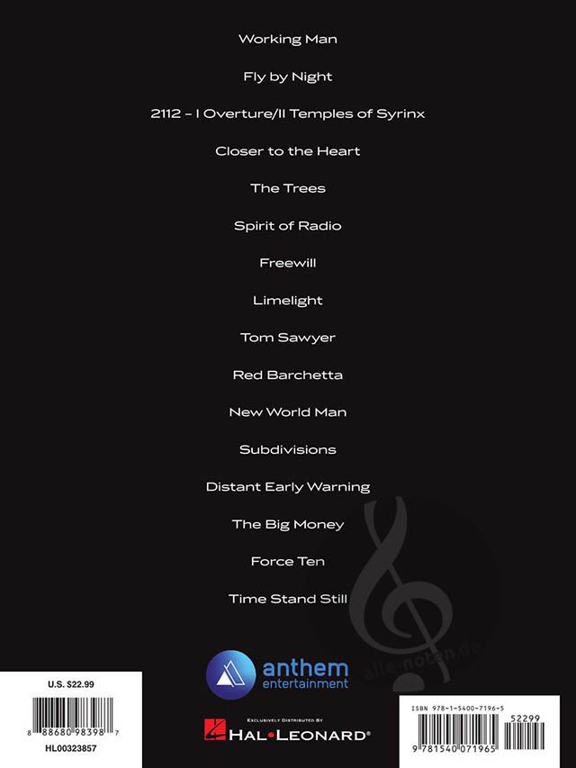 17 exact drum transcriptions of the most popular hits from Neil Peart's playing for Rock & Roll Hall of Famers Rush.