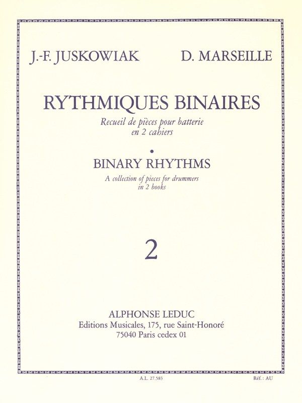 Contemporary percussionists Jacques-François Juskowiak and Dominique Marseille compile the second volume of Binary Rhythms with the objective of developing differing styles of various difficulty. Containing helpful indications ofdifficulty, the style of the pieces in this book reflect the playing of prominent drummers, such as Steve Gadd, Jeff Porcaro and Carlos Vega. Beginning with a page of instructions with regards to Drum notation, Binary Rhythms goeson to develop rhythm and coordination as a progression from the first volume, through its inspiring study pieces. This unique aid to drumming is key to all drummers seeking to vary and expand their style.