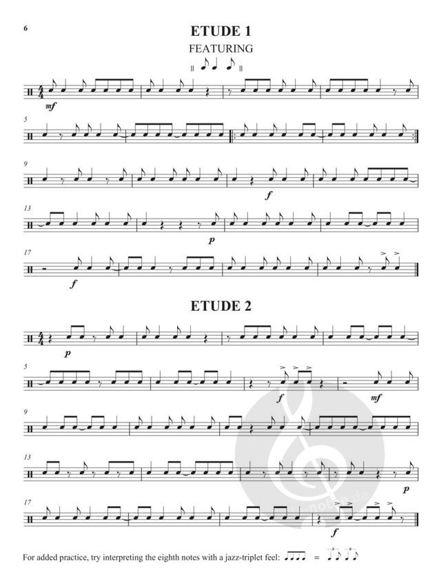 This group of unique and musical etudes focuses on every aspect of syncopation for the intermediate and advanced player. Here you will find an extensive set of etudes that include syncopation with quarter and eighth notes, eighth and sixteenth notes, and triplets. Moreover, the etudes are presented in 2/4, 3/4, 4/4, 5/4, 7/4 3/8 and 5/8 time. Never before has there been such an in-depth presentation of the topic. If you want to develop greater skill in reading syncopation, this exceptional book is a must in the library of any serious drummer.