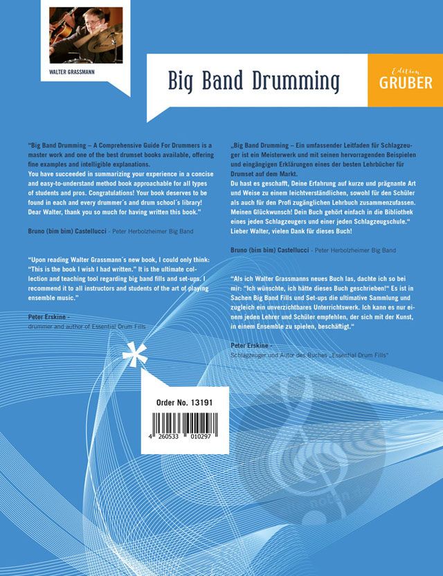 This Play-Along for Drums includes carefully re-written Drum Charts with additional drum fills and an Audio CD including 14 tracks to play-along in different styles like Funk-Shuffle, Funk-Rock, Latin-Rock, Ballad, Straight funk etc. featuring the Vienna Big Machine without drums.